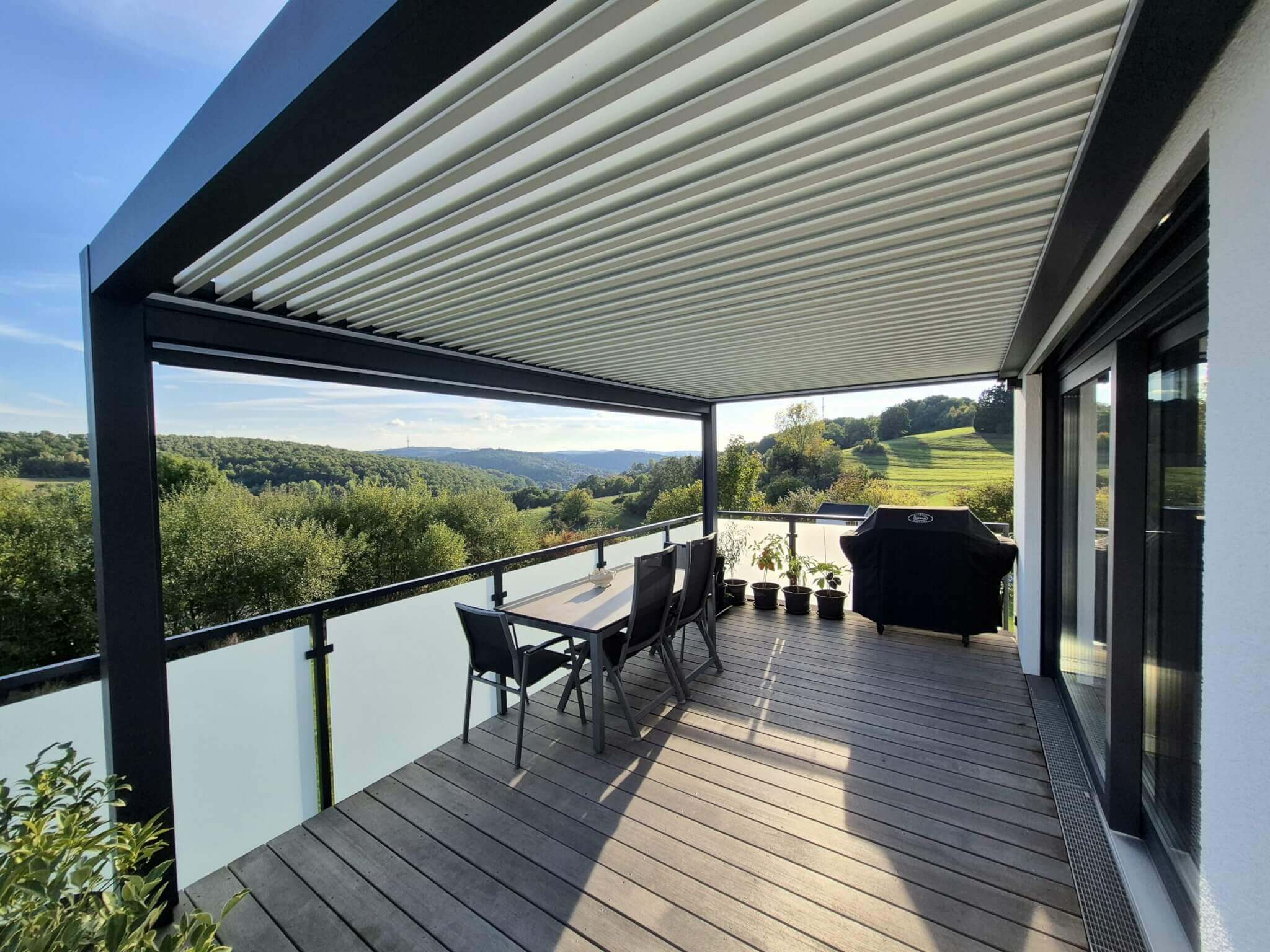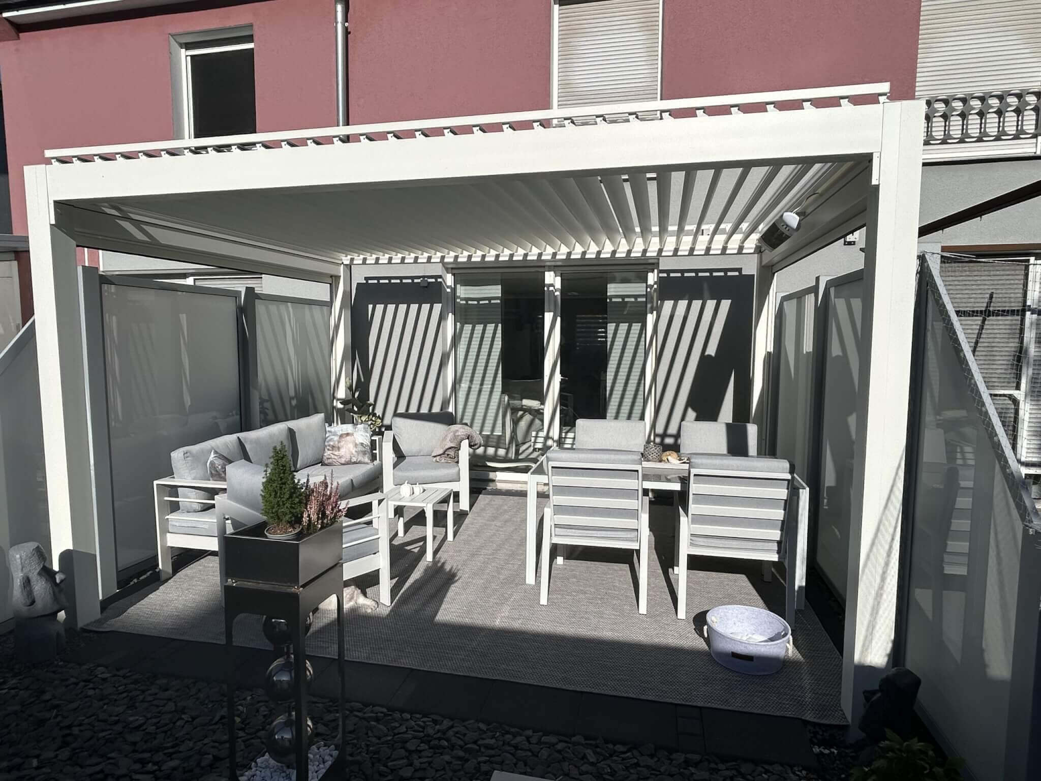 Wir sind absolut begeistert von unserem elektrischen Lamellendach Mezzo! Die Kombination aus Sunscreens – zwei davon elektrisch mit Solarbetrieb – der stimmungsvollen RGB-Beleuchtung und der Infrarotheizung ist einfach perfekt. Egal ob Sommerhitze oder kühle Abende, wir nutzen unsere Terrasse das ganze Jahr über. Das moderne Design, die hochwertige Verarbeitung und die durchdachten Funktionen machen die Pergola jeden Euro wert. Wir könnten nicht zufriedener sein!