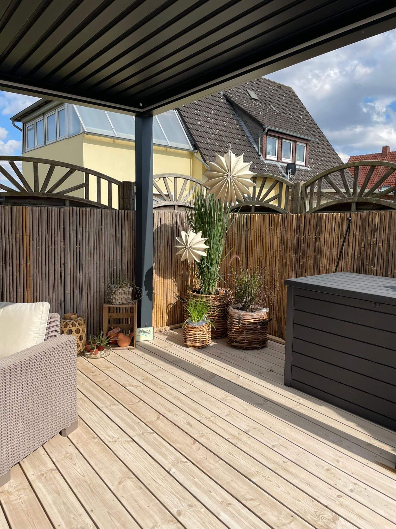 - Ästhetik: Ein Lamellendach verleiht Ihrem Außenbereich eine moderne und elegante Optik.