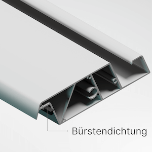 Zudem ist das Lamellendach statisch für eine Schneelast von bis zu 60 kg/m² ausgelegt, was etwa 75-125 cm Pulverschnee entspricht. Bei höheren Schneelasten sollten die Lamellen geöffnet bleiben, damit der Schnee durchrutschen kann.