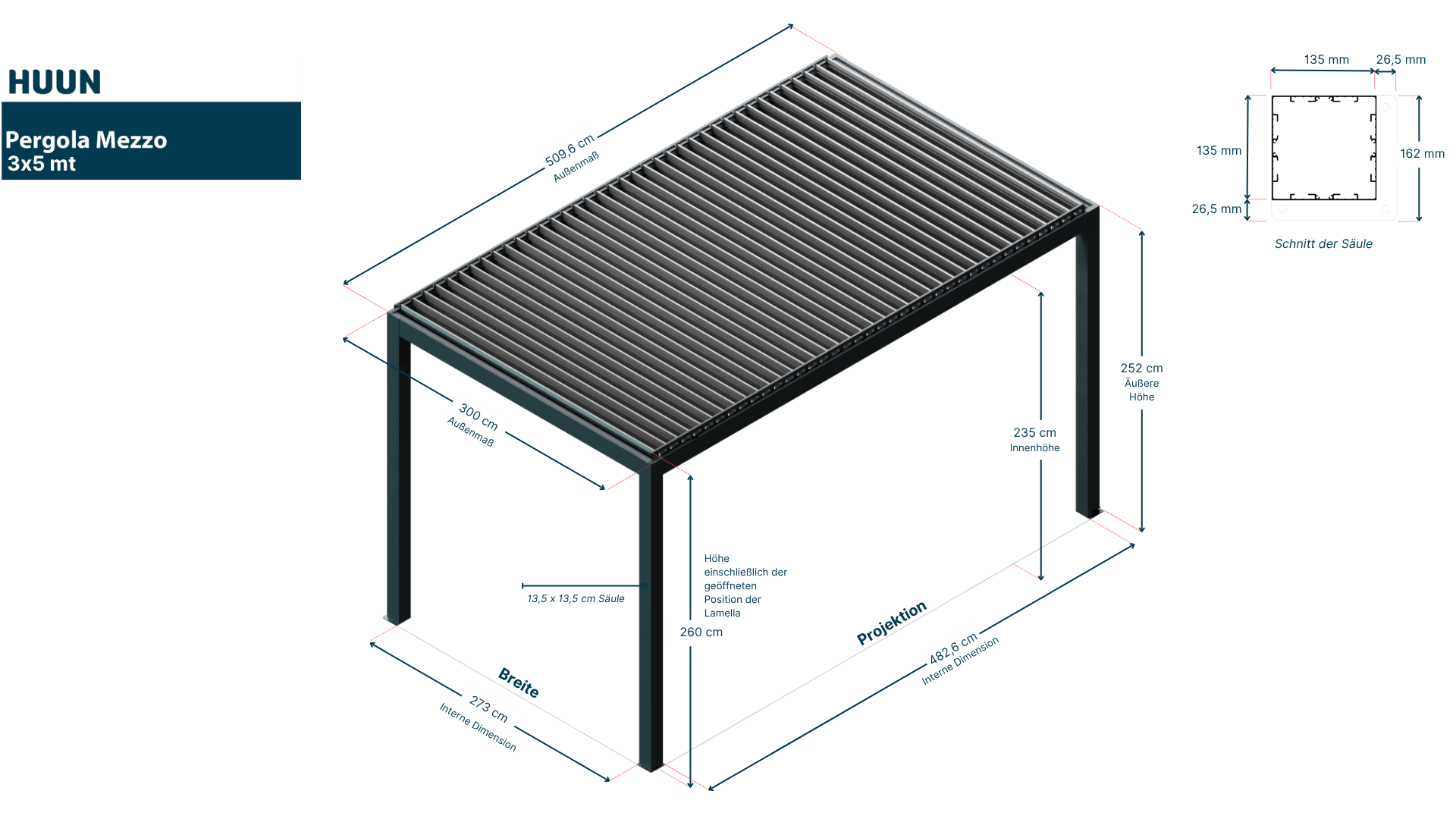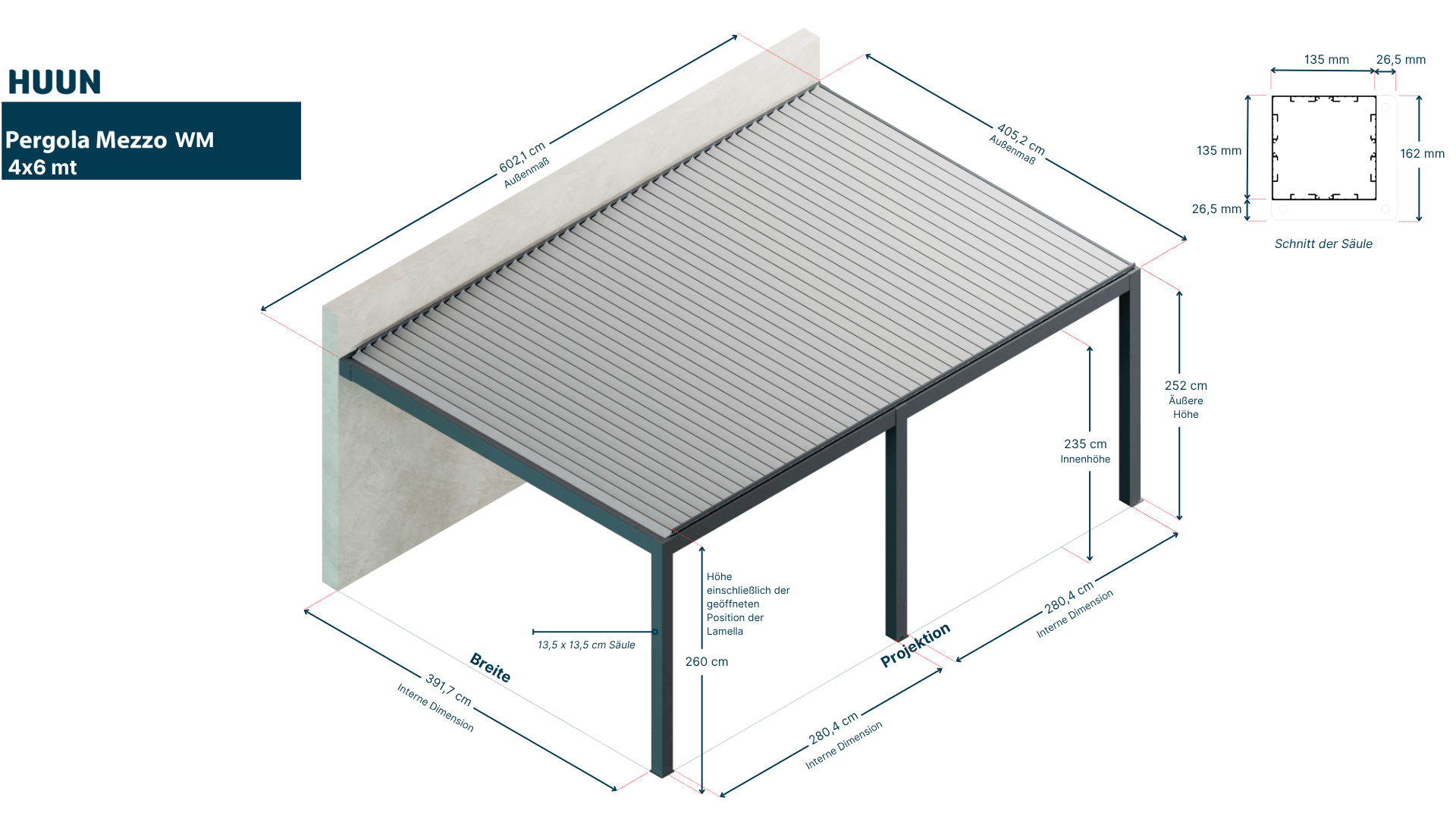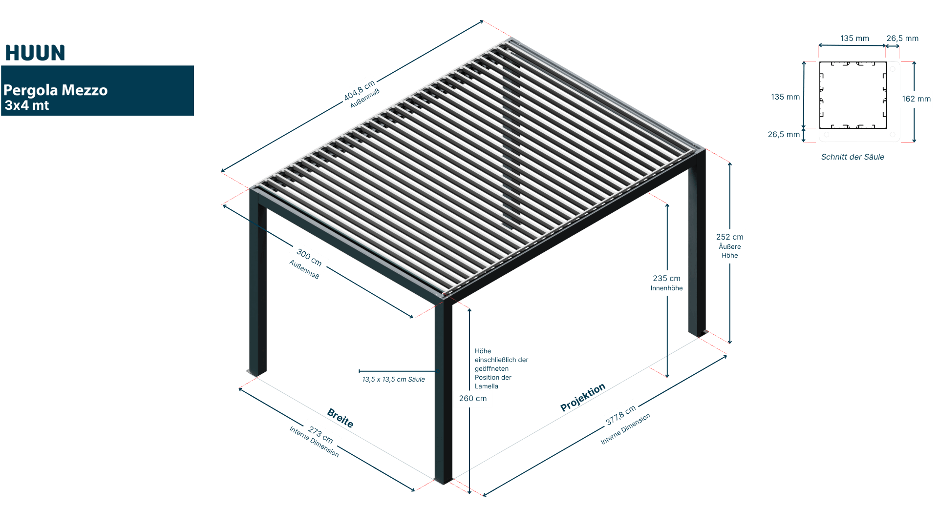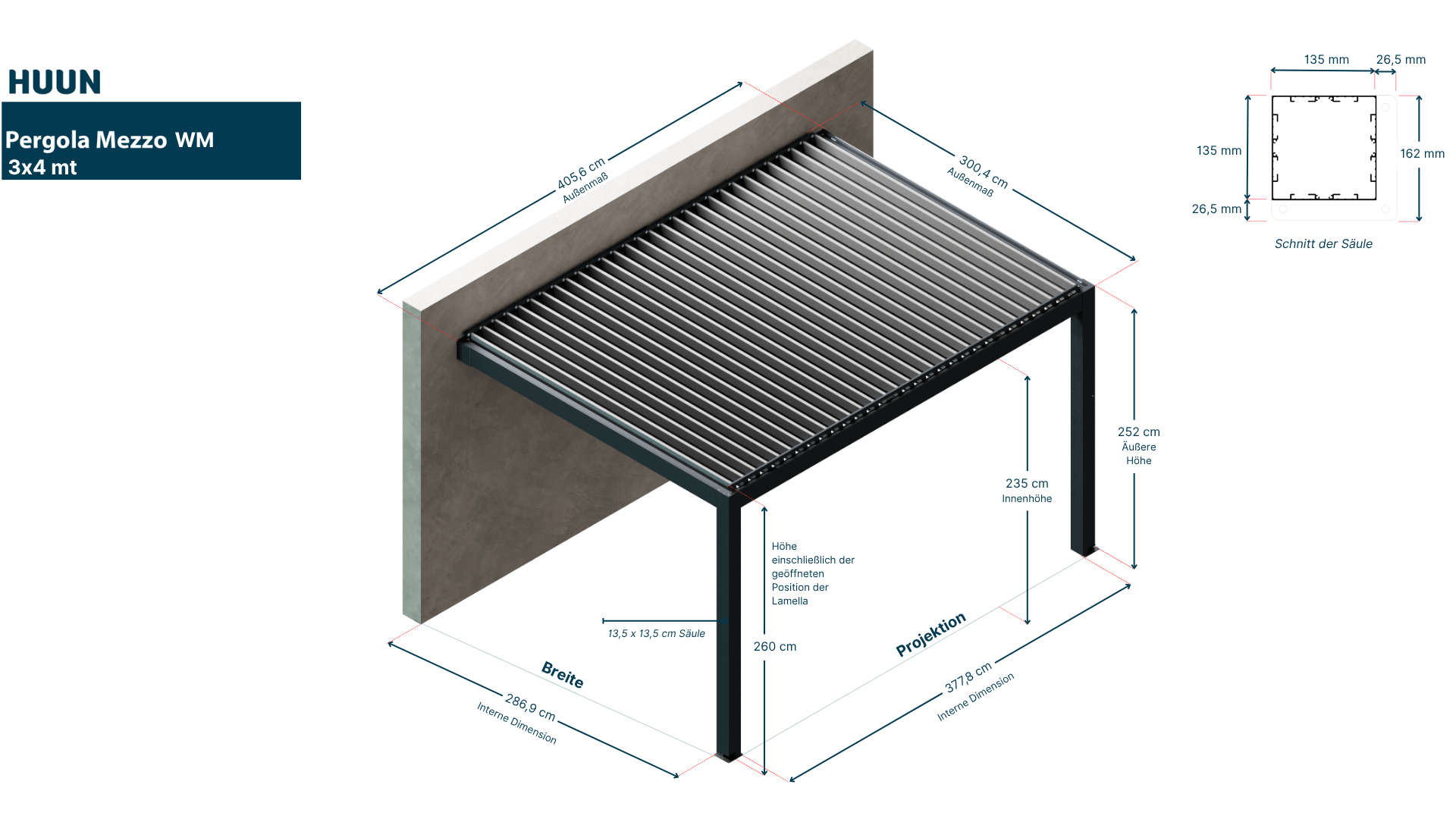 HUUN Pergola Mezzo, Lamellendach elektrisch