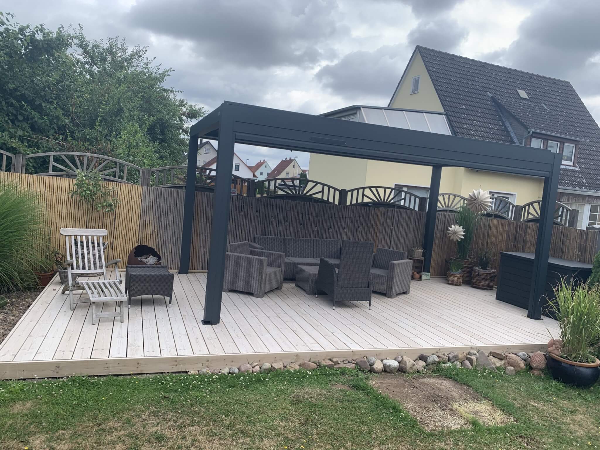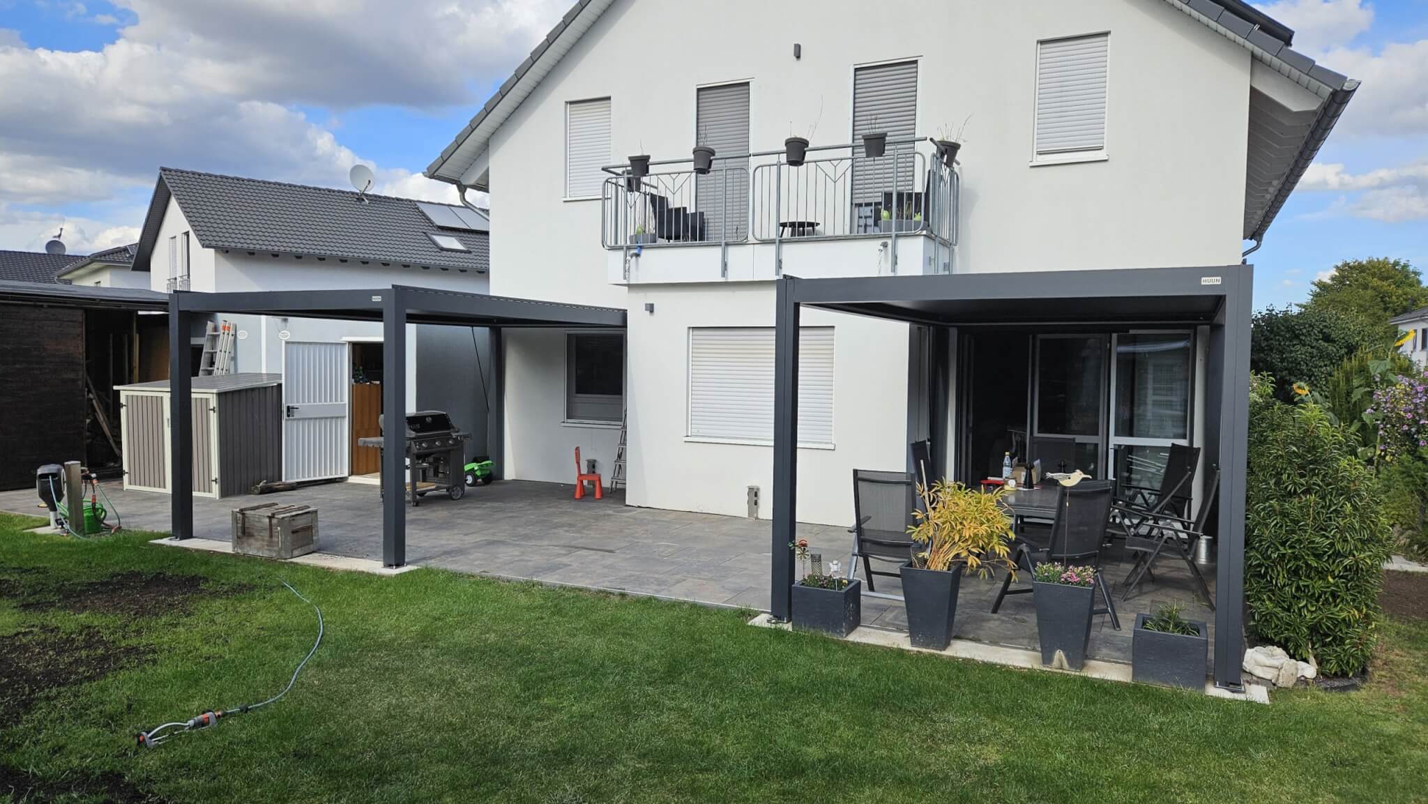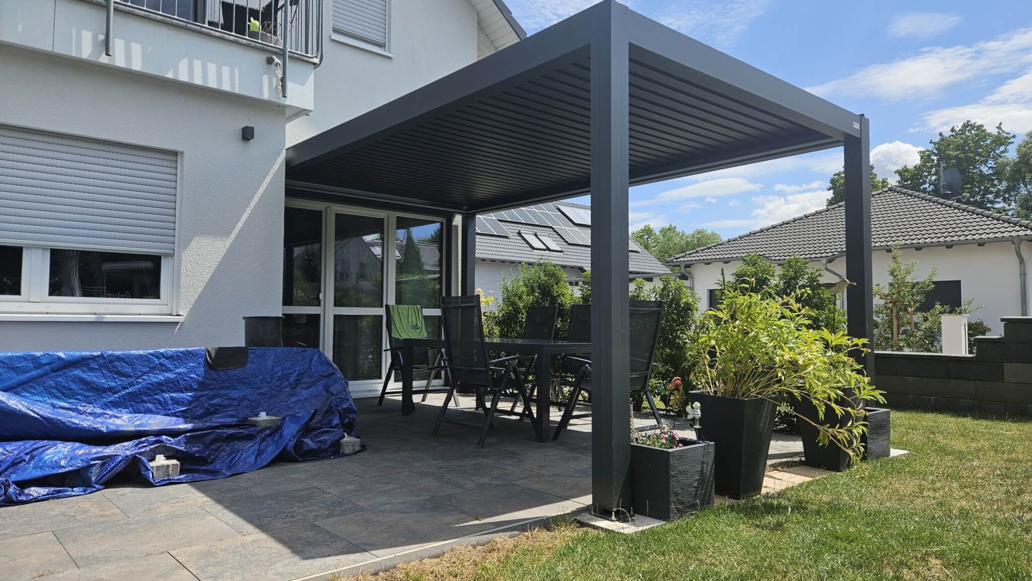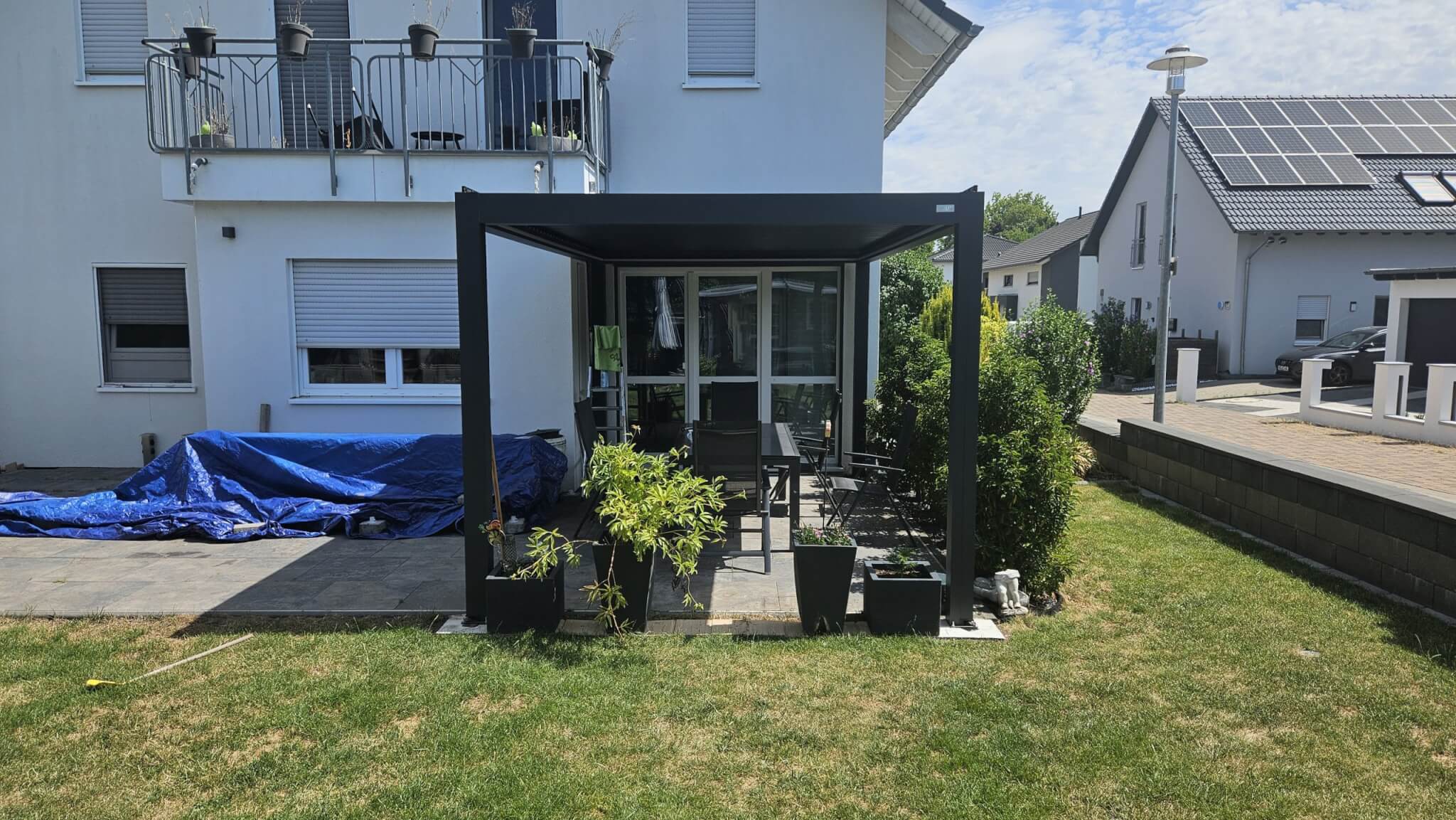 Unsere Pergolen bestehen aus hochfestem, pulverbeschichtetem Aluminium. Dies garantiert absolute Rostfreiheit, UV-Beständigkeit und eine lange Lebensdauer, selbst unter den wechselhaften Wetterbedingungen in Deutschland.
