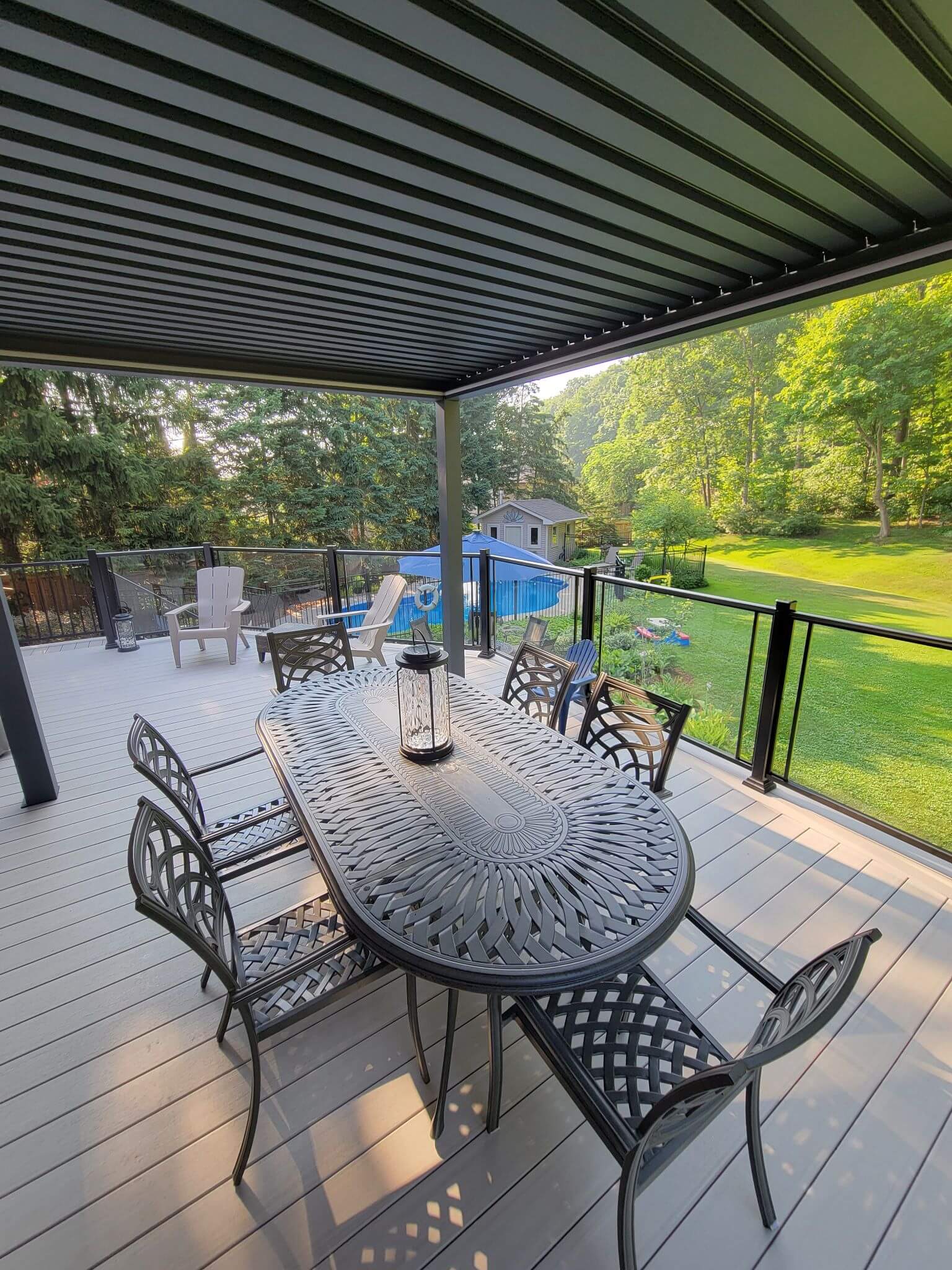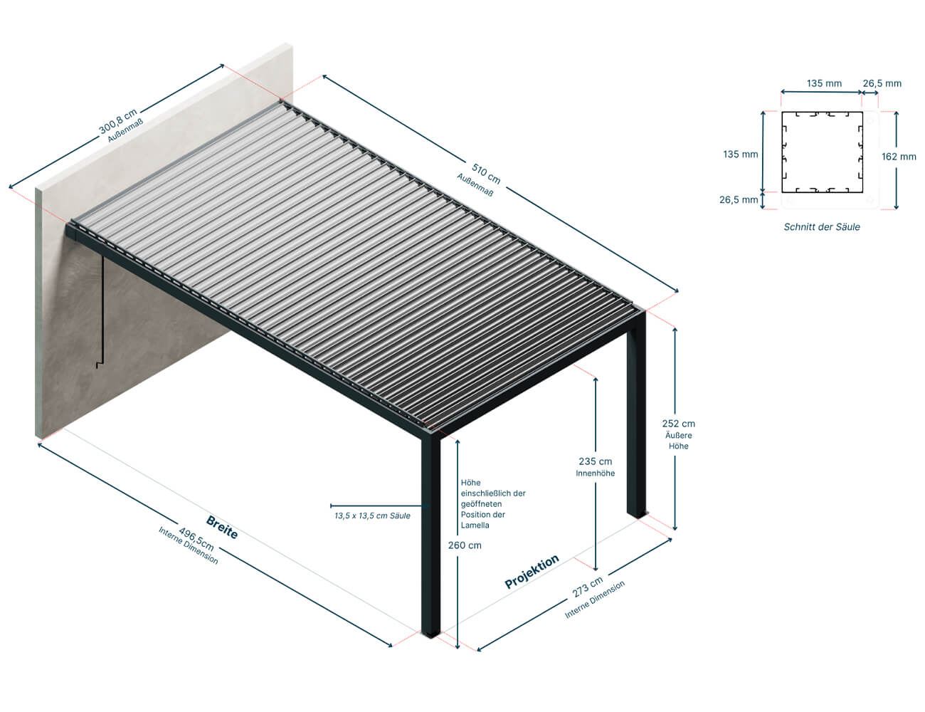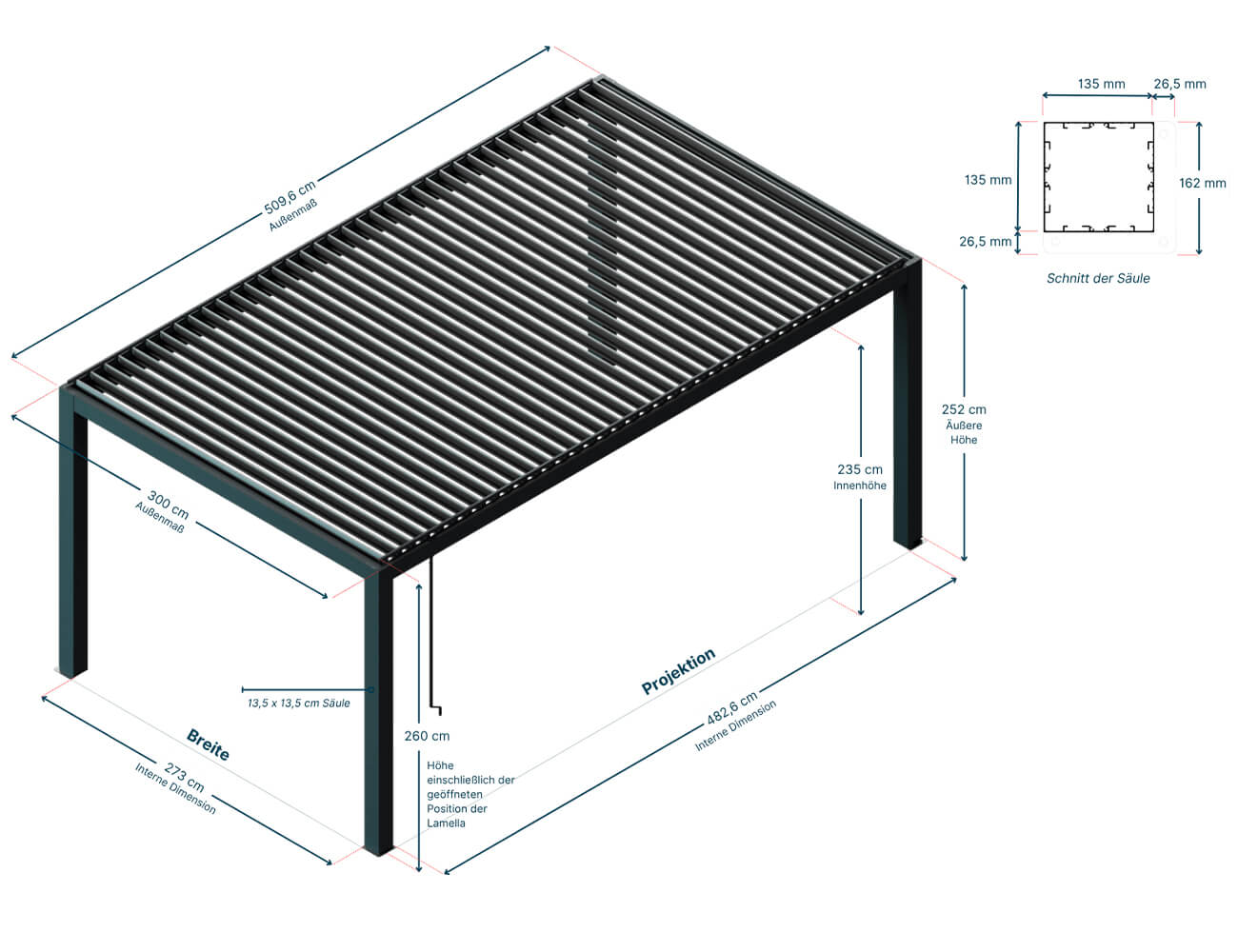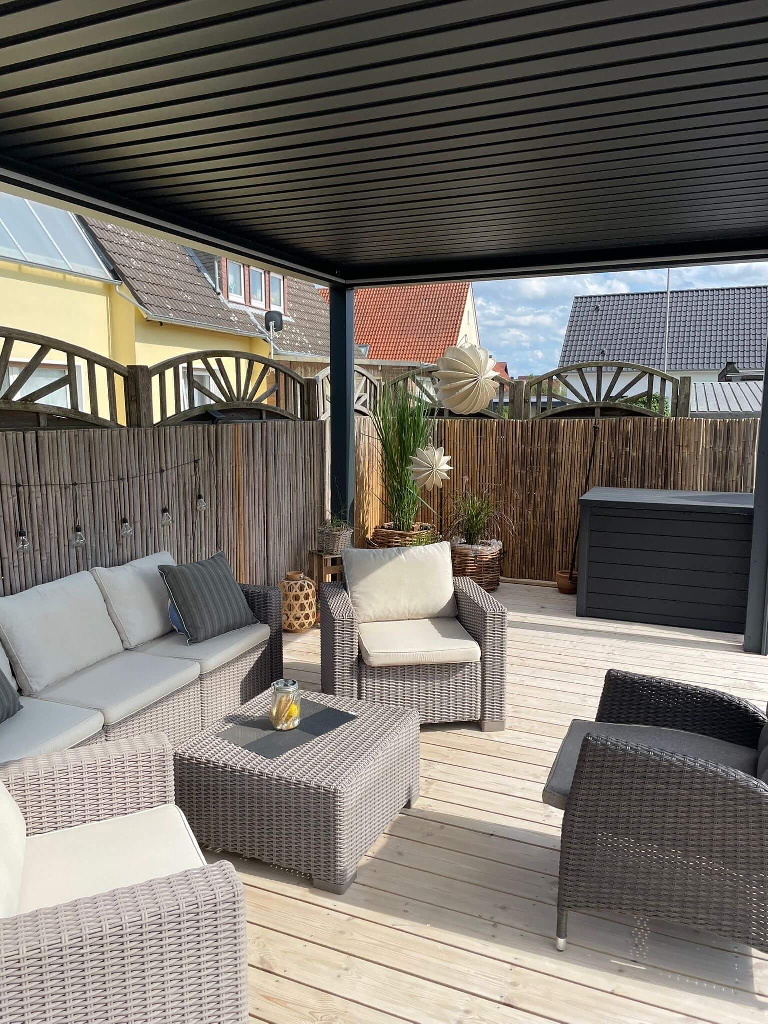 Unsere Pergolen bestehen aus hochfestem, pulverbeschichtetem Aluminium. Dies garantiert absolute Rostfreiheit, UV-Beständigkeit und eine lange Lebensdauer, selbst unter den wechselhaften Wetterbedingungen in Deutschland.